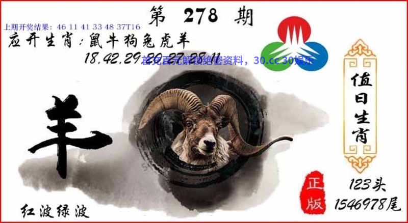 281期:九肖 | 狗猴猪龙兔蛇鼠羊牛 | 羊47中 |