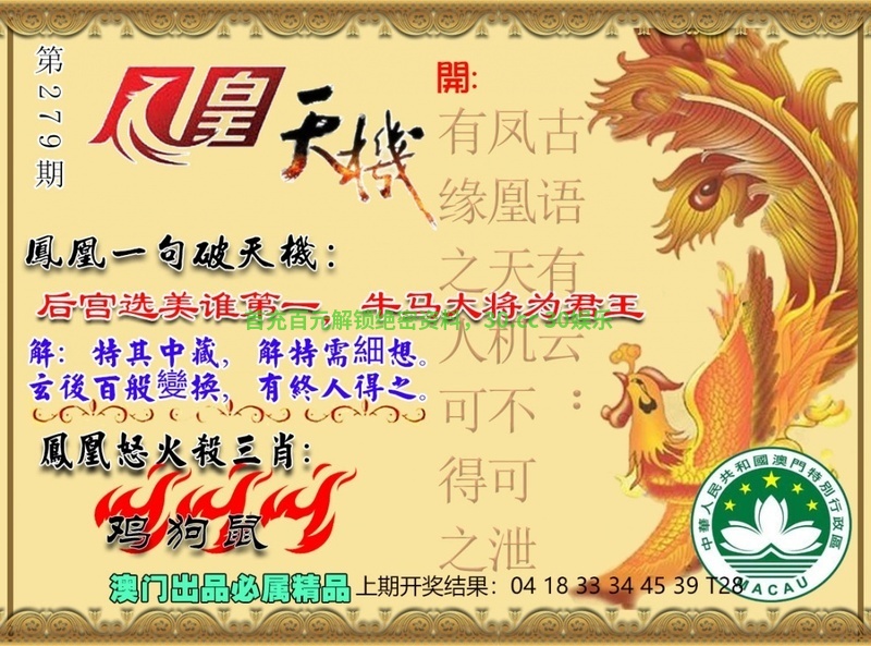 279期绝杀两肖【羊鸡】开:兔27中 |